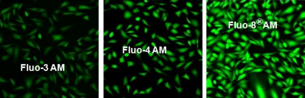 Fluo-8®在细胞内的亮度远超Fluo-3和Fluo-4(如图所示)。